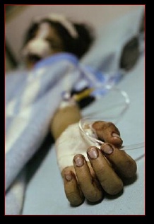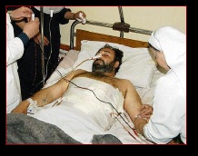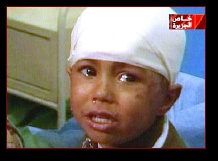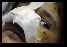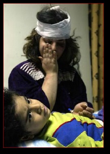Nada Adnan, 13 years old and a student at high school for girls, states "I wish that God would take Bush. Why did he do this to us? to me?". She has an open gash on her right cranium with underlying fracture and a large, deep shrapnel gauged cut into her upper left thigh. She has no narcotic relief and cries out as aides press guaze into her leg wound.