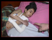 Teenager taken to surgery. Received shrapnel wounds to his head, arms and legs.